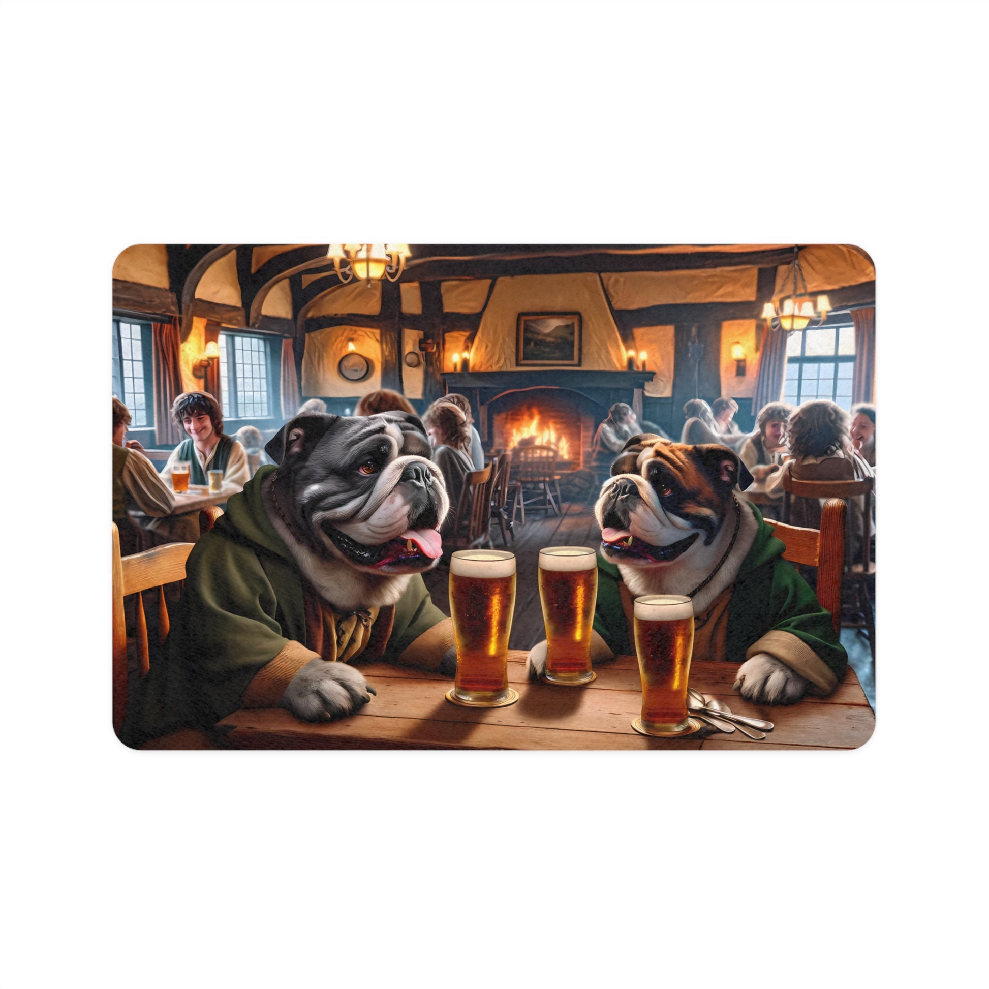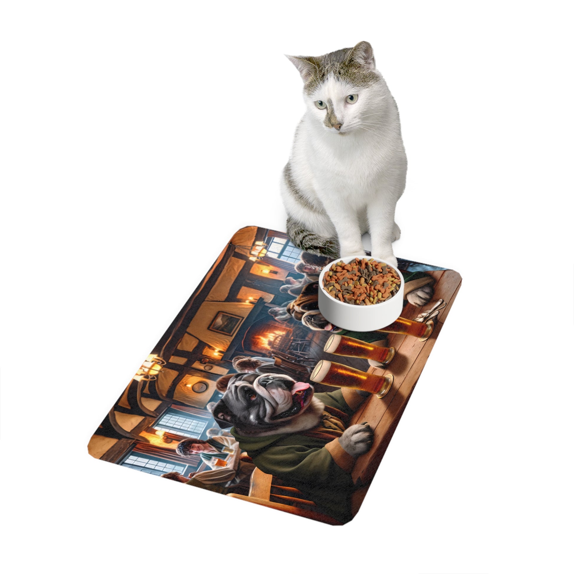 The design features a charming illustration of a tavern straight out of a fantasy world, complete with hobbit hounds and other whimsical creatures. This mat will add a touch of fun and imagination to your pet's mealtime, making it a delightful treat for both you and your furry friend.