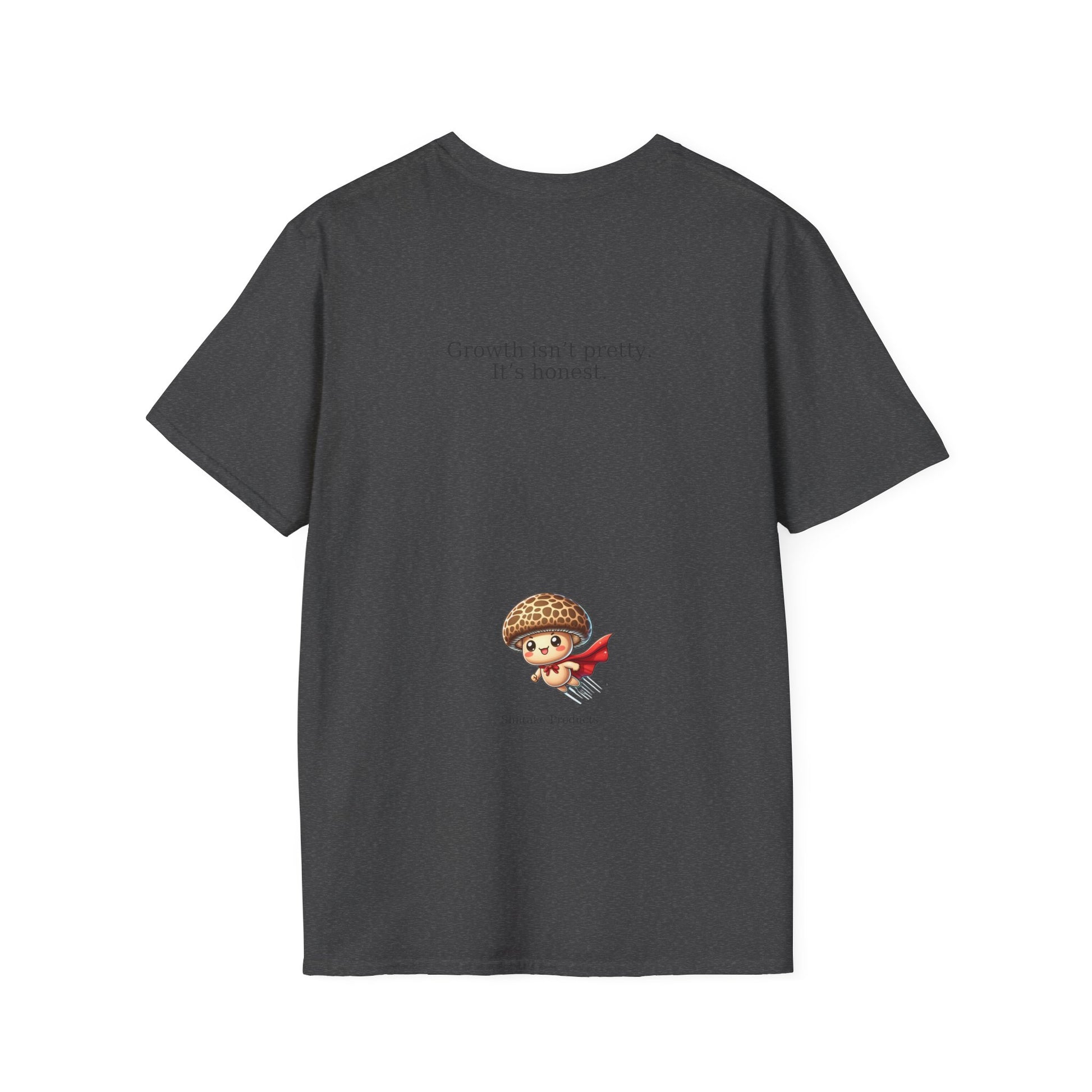 Our “I Love You So Mush” tee features a ridiculous little mushroom who feels way too many feelings and isn’t afraid to show it. Rosy cheeks, lopsided grin, holding a heart like it’s about to confess something awkward but honest. It’s cozy, it’s weird, and it means every word.