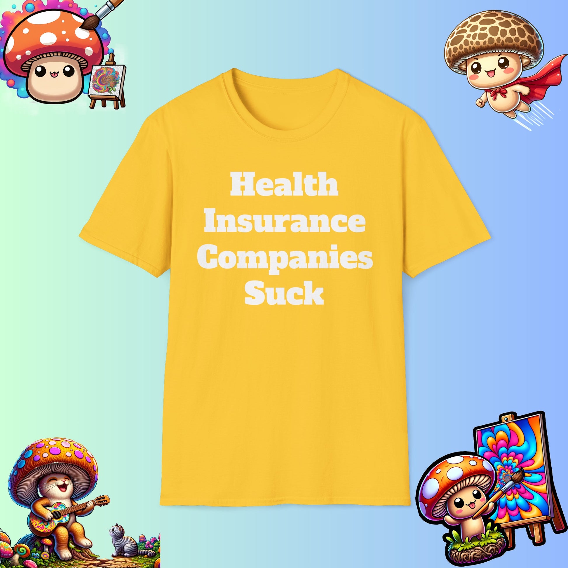 Introducing our bold and edgy tee, the HEALTH INSURANCE COMPANIES SUCK graphic tee. This statement piece is not just a fashion statement, but a powerful message against the current state of health insurance companies.