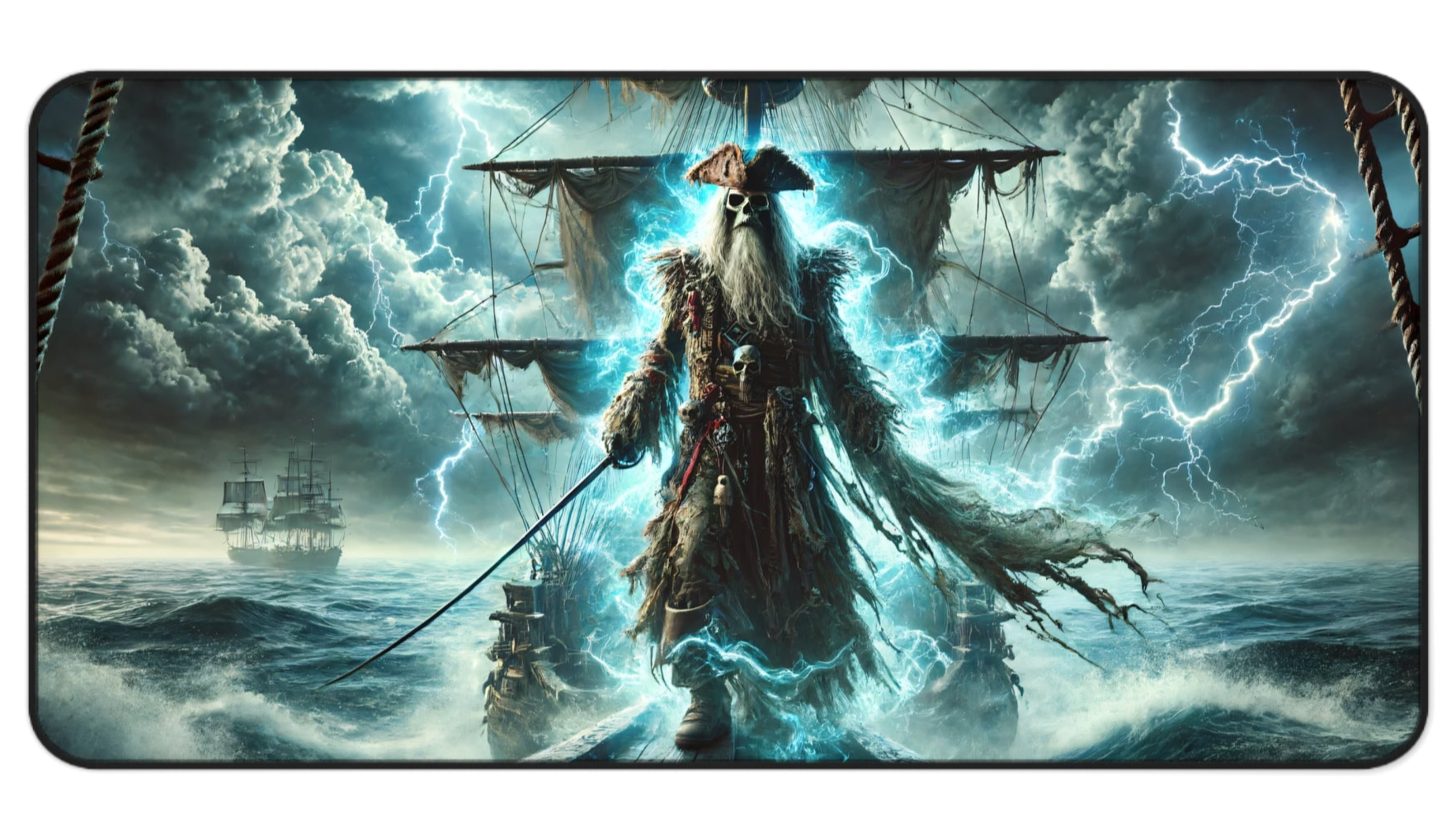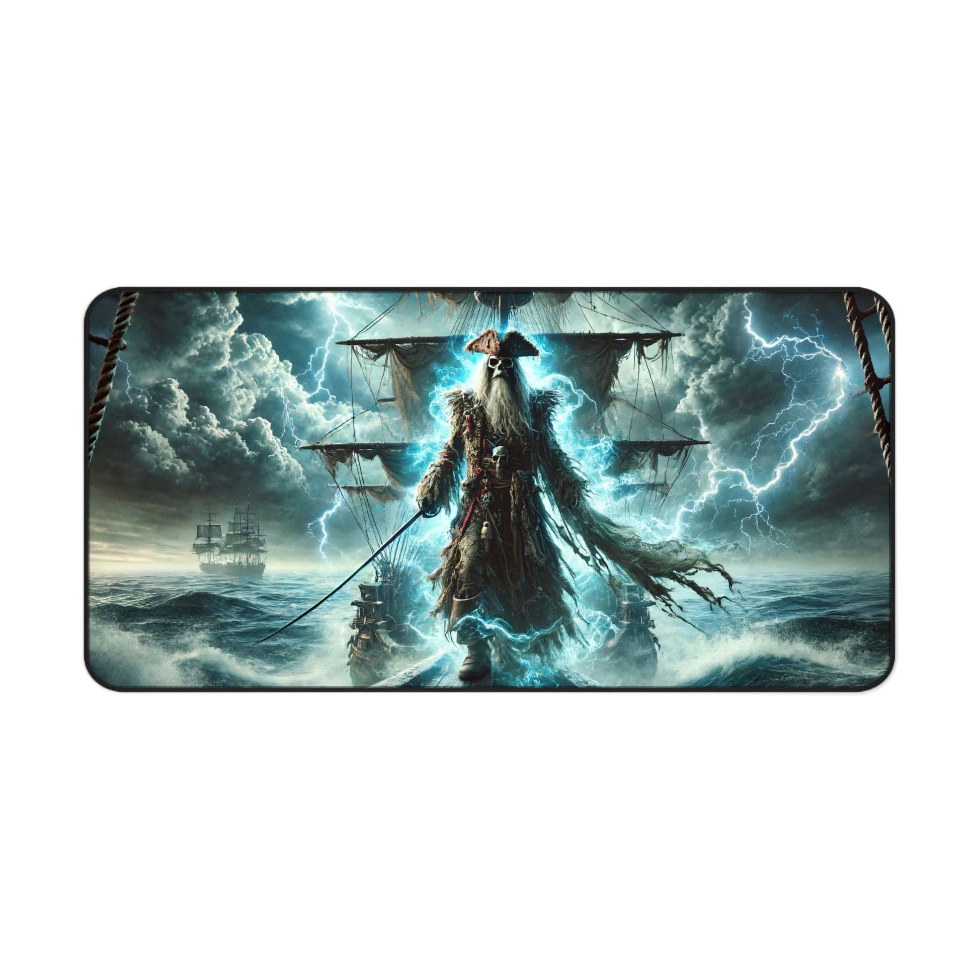 Transform your workspace with this stunning desk mat featuring a captivating pirate ship in a lightning storm scene. Perfect for gamers and ocean lovers, this mat adds a thrilling touch to any desk. The high-quality neoprene material ensures durability and a comfortable surface, while the anti-slip backing keeps it securely in place during intense gaming sessions or busy workdays.