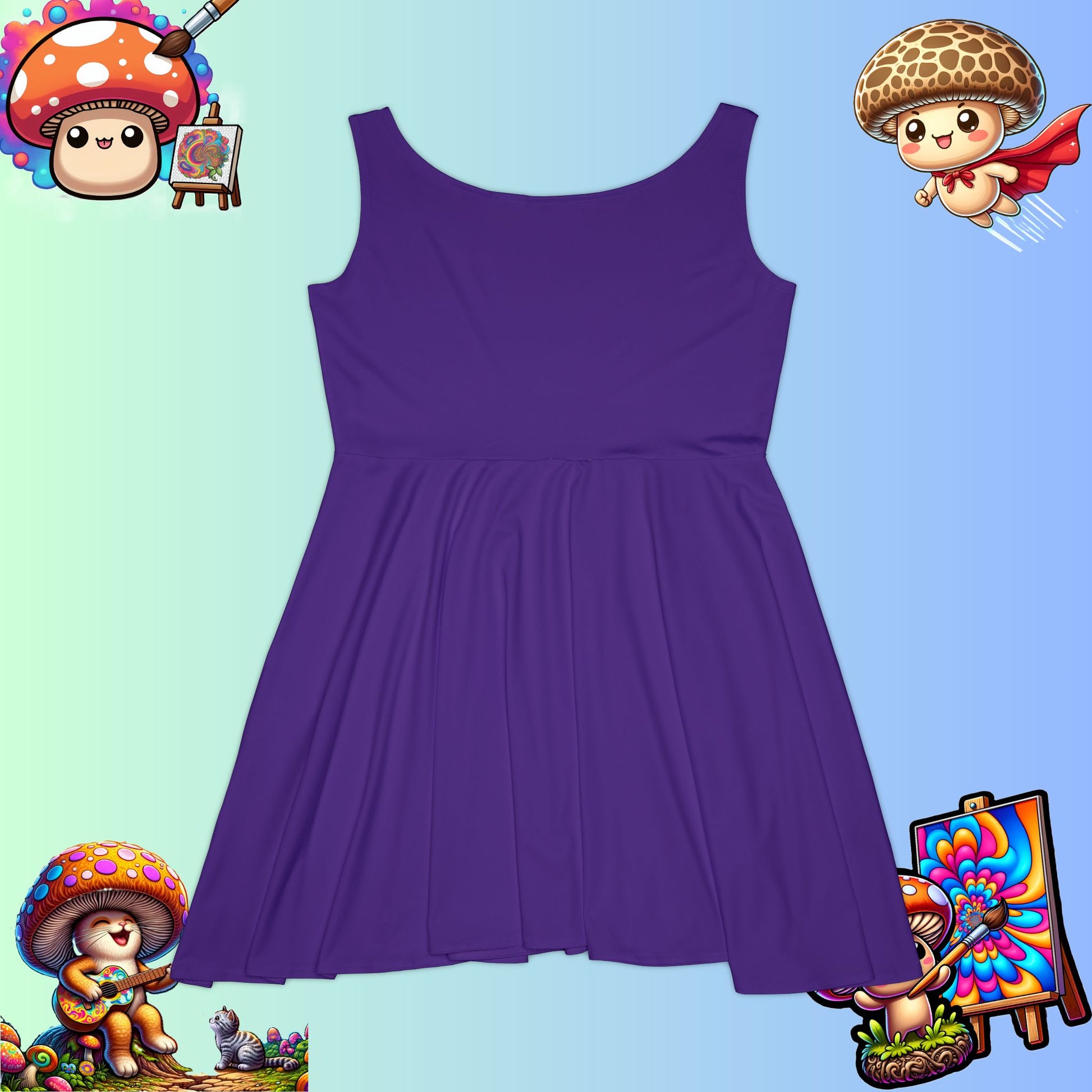 Turn heads and make a statement with this vibrant, ultra-comfy skater dress featuring the Shiitake Products logo loud and proud. Whether you're hitting a festival, strolling through the city, or just vibing in your own worldโthis dress is for those who donโt do boring.
