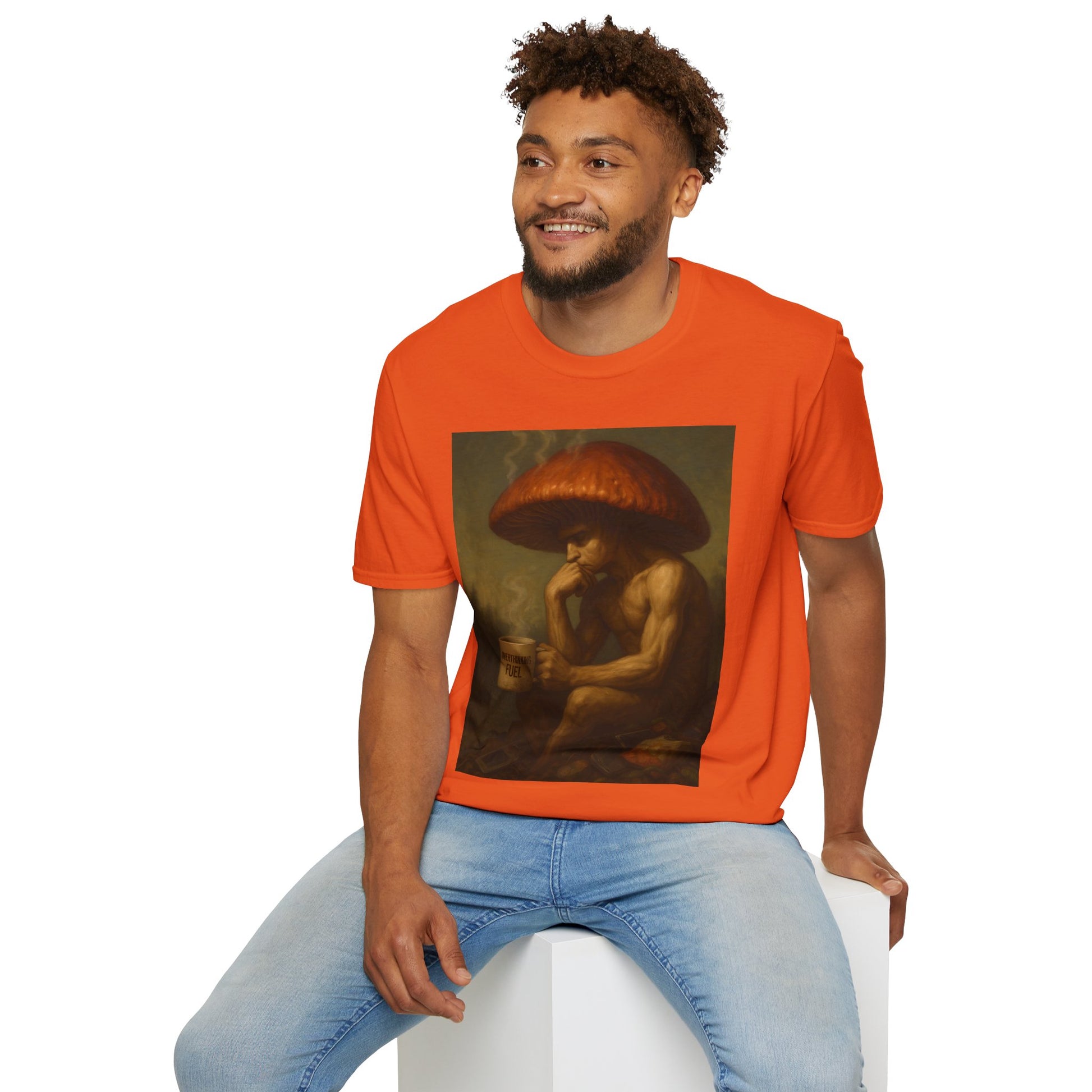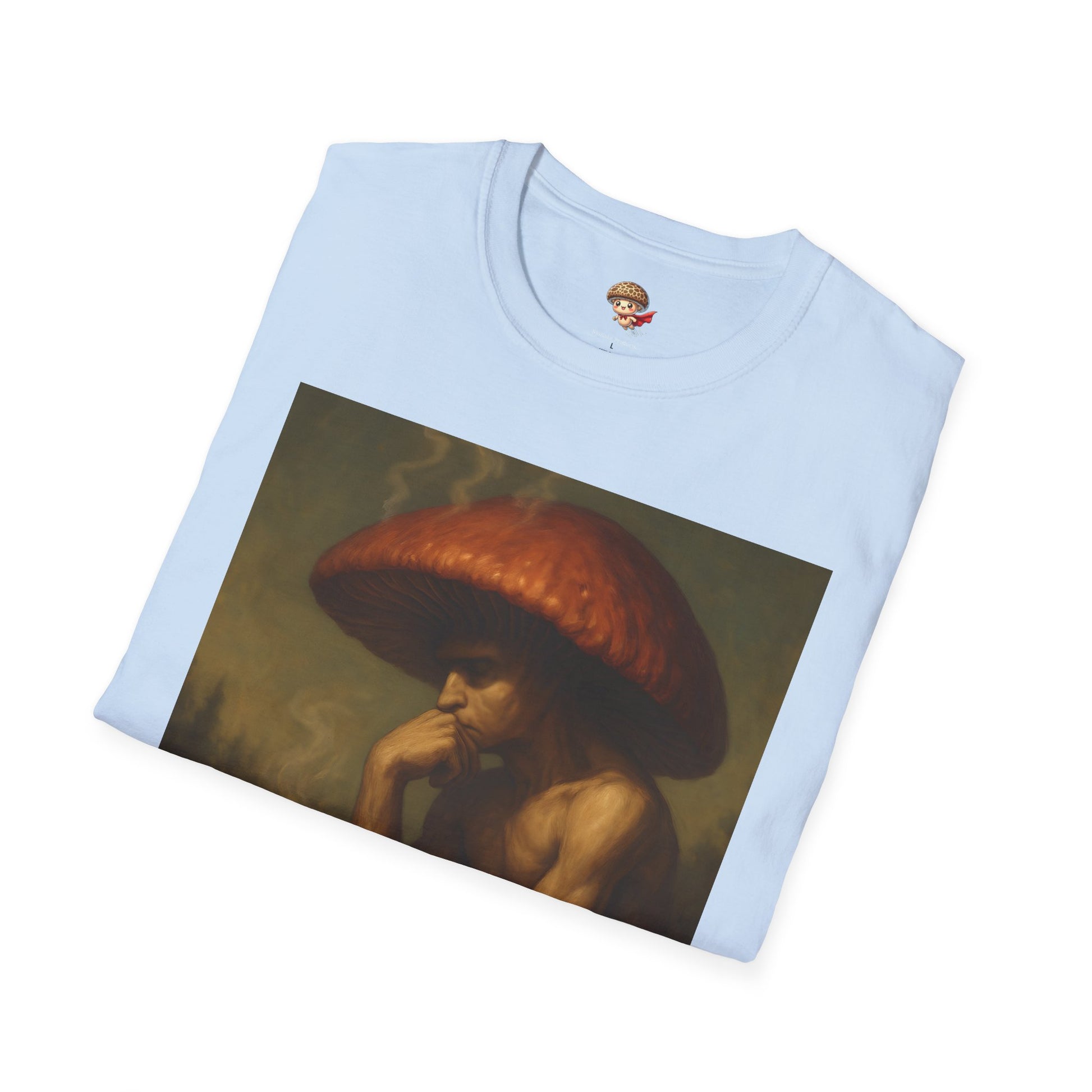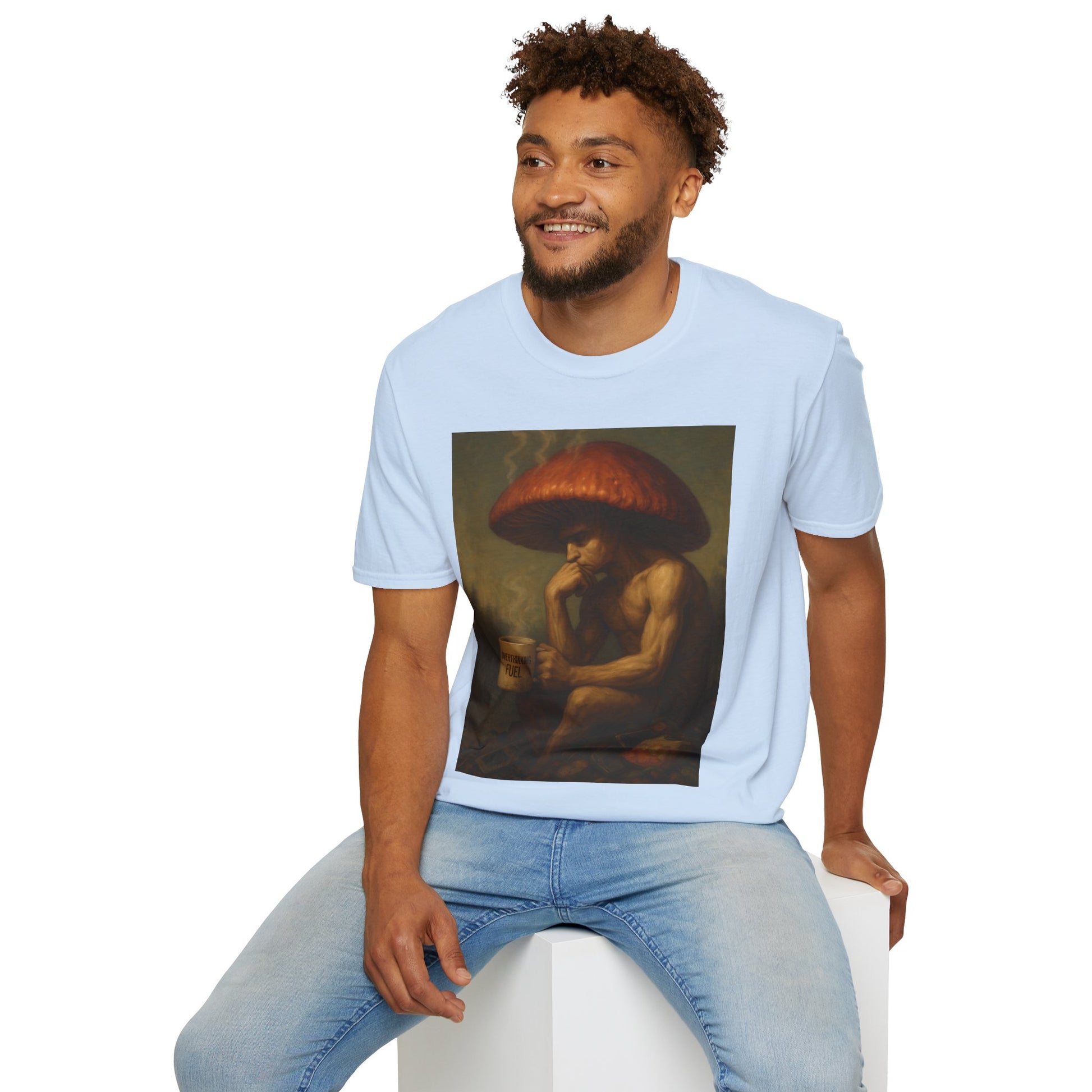 🎨 Design: Original Shiitake Products artwork of The Overthinker — detailed, painterly realism that fuses humor and existentialism.
