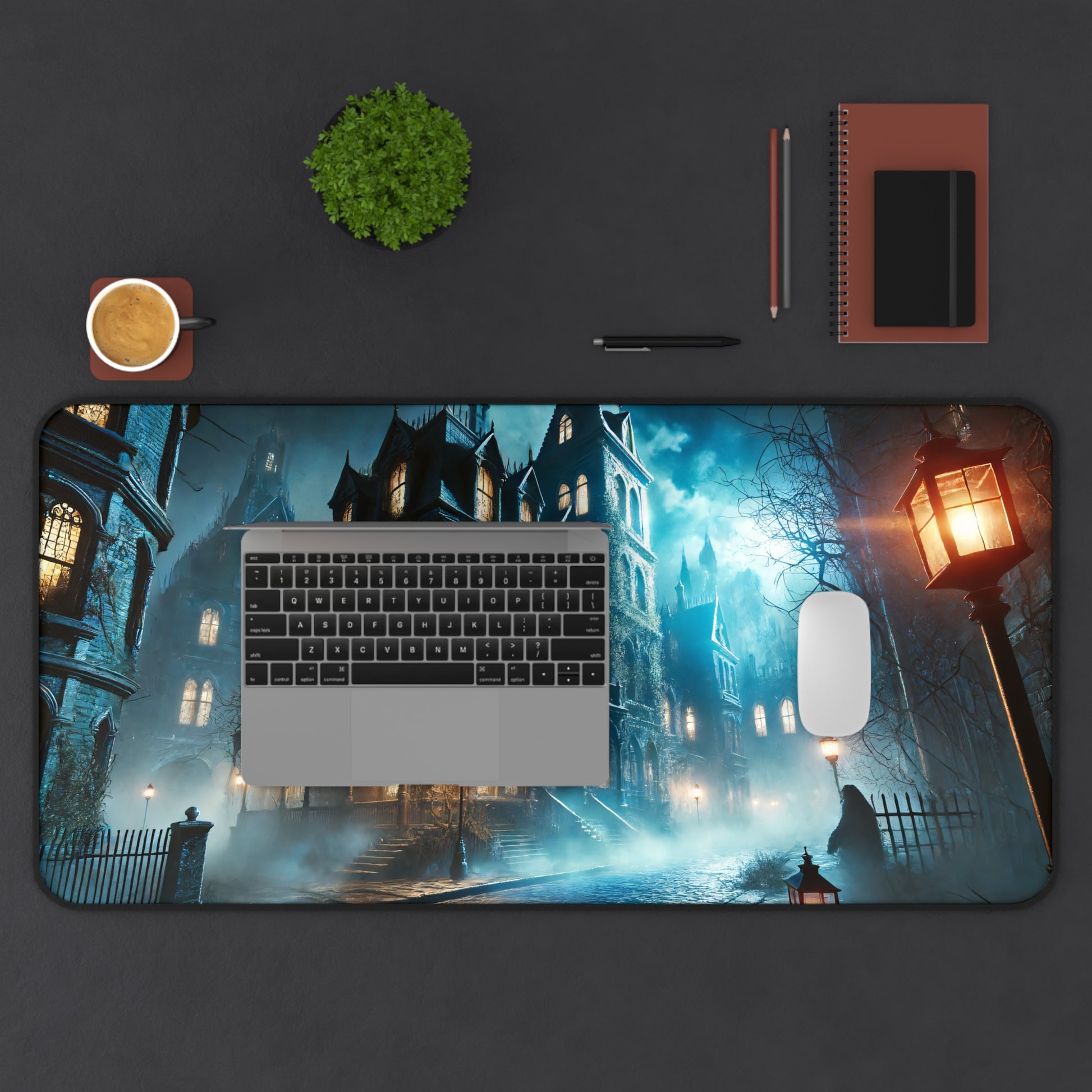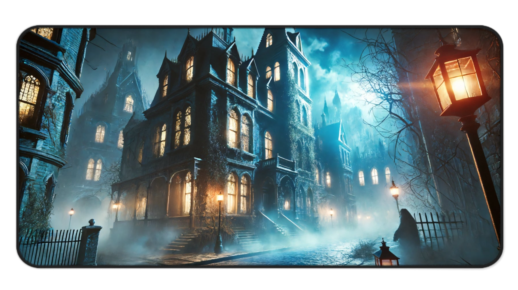 Immerse yourself in a chilling Victorian-era ambiance with the Victorian Nightmare Gaming Desk Mat. This 31.5"x15.5" mat features a hauntingly beautiful scene of spectral entities and foggy, decaying buildings. Designed for both style and performance, it offers a smooth, durable surface for precision gaming, and a non-slip rubber base to ensure it stays in place during intense sessions. Perfect for those who appreciate a touch of the eerie, this mat transforms your gaming setup into a spine-chilling experience.